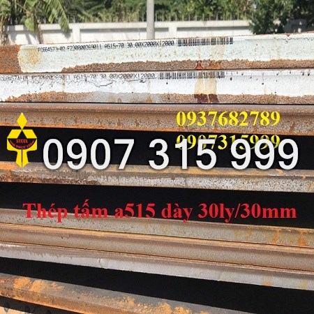 Thép tấm ASTM A515 là một mác thép của Mỹ cho nồi hơi và tàu có sức ép cao. Các mác thép sản xuất theo tiêu chuẩn này phải được kiểm soát chặt chẽ về cơ tính, lý tính và thành phần khóa học theo yêu cầu đặc biệt. Các yếu tố lực phải được thử nghiệm liên tục trong nhiều lần để đảm bảo độ bền kéo, khả năng chịu va đập, chịu tải lực và sức nén. Công ty chúng tôi đăng cung cấp thép tấm a515 với độ ly thông dụng như sau: 5ly 6ly 8ly 10ly 12ly 14ly 16ly 18ly 20ly 22ly 25ly 30ly 35ly 40ly 45ly 50ly...100ly. Thép tấm chịu nhiệt a515 có nguồn gốc từ Nhật Bản, Hàn Quốc.